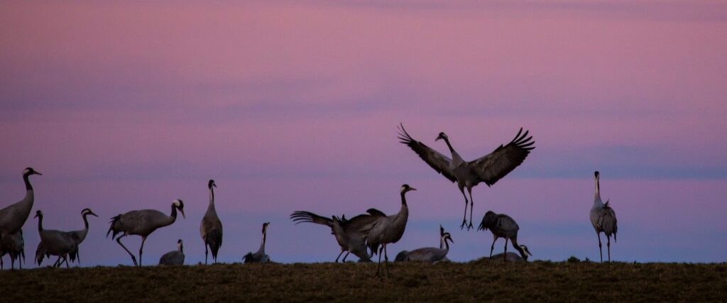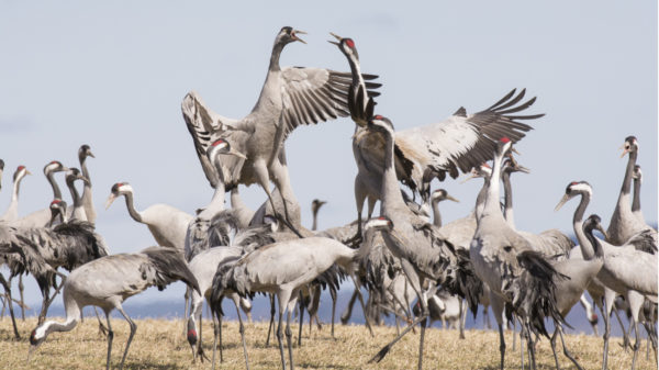 Hornborgasjön är en av Europas viktigaste fågelsjöar. Den ligger vackert belägen vid platåberget Billingens fot i ett böljande vackert kulturlandskap. Varje vår lockar de tusentals dansande tranor, på väg till sina häckningsplatser, besökare till den västgötska våtmarken mellan Skövde, Skara och Falköping. Här finns flera utsiktspunkter. Under dansen gör fåglarna väldiga luftsprång, bugar och cirklar runt varandra. Det går inte att säga något visst klockslag eller viss tid på dagen som det blir dans, men det är nästan säkert att den blir av. Vid sjöns sydvästra ände ligger Trandansen och här har transkådandet varit en folkfest sedan början av 50-talet. Till Trandansen kommer runt 150.000 besökare varje vår – från både när och fjärran – för att se tranorna bära ljus i säng, alltså komma med våren till den kalla Norden. När tranorna är som flest kan det röra sig om ca 14.000 fåglar samtidigt.